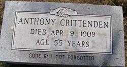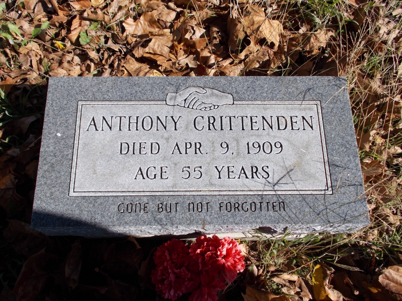 Anthony Crittenden (son of Moses and Emily) was born in Polk County, Arkansas about 1854 and died April 9, 1909. He is buried at Bennett Cemetery in Warner, Oklahoma.  I was very lucky to find a photo of Anthony in a family tree on Ancestry.com  He is one of only three Crittendens from this generation of whom I have a photo.